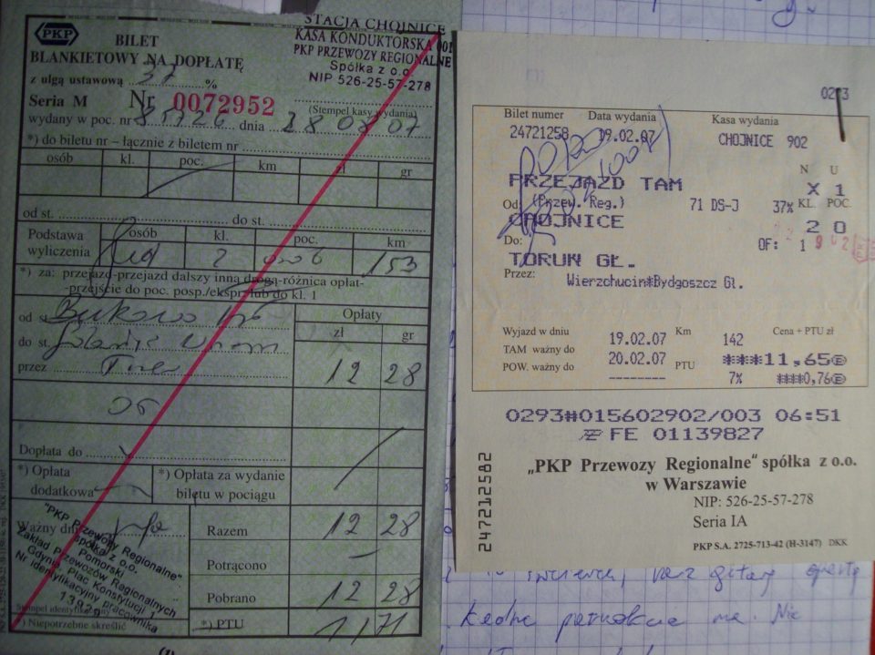 Dalej tunel pod torami i kasa z biletami. Ta opowieść jest pisana na biletach, bo chciałem pisać, a nie mam ze sobą ani plecaka, ani zeszytu (zresztą skończył się już napęczniał nasycił się treścią i zebranymi papierami). Poza tym to pyszna zabawa: opowieść w kawałkach, powieść w rozdziałach, na biletach z portfela rozsiana różnych formatów i kolorów.