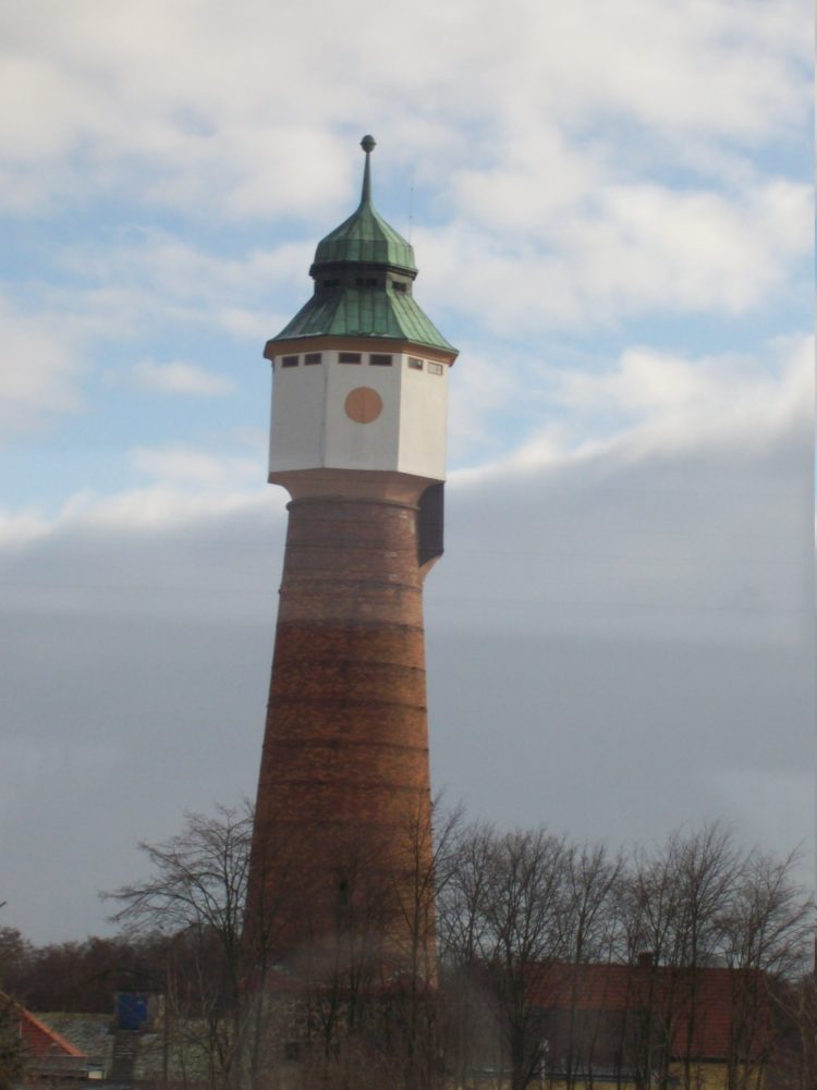 Od góry, na tle nieba białosiwego odbija się krzyż z kołem pośrodku, jak w monstrancji. Stoi na kuli, może kuli ziemskiej i wieńczy cebulasty hełm z zielonej blachy. U jego spodu granica nieba i lasu nadmorskiego. Dalej słupek wieży, w jasnym ziemistym kolorze, może jasnej gliny. Zamknięte drewnem okno z pełnym łukiem, przy łuku nad […]